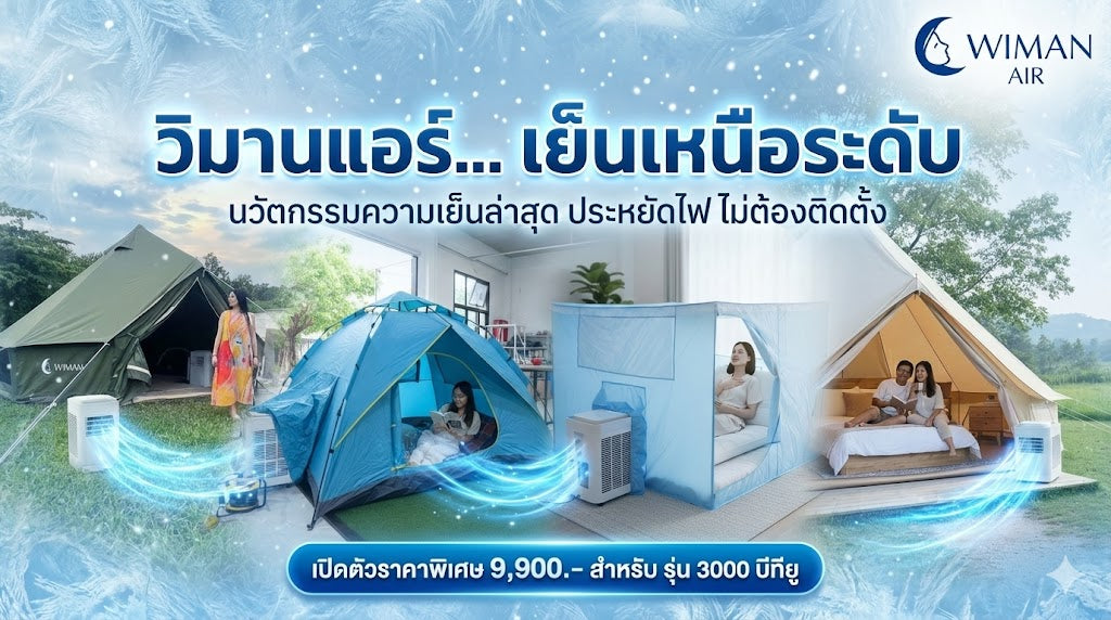 แอร์เคลื่อนที่ วิมานแอร์ (WIMAN AIR) ❄️ รวมรุ่นแอร์เคลื่อนที่ของวิมานแอร์ ครบตั้งแต่ชุดเล็กสำหรับมุ้ง/เต็นท์ ไปจนถึงรุ่นกำลังสูงสำหรับห้องและงานอีเวนต์ เน้นเย็นไว เงียบ ประหยัดไฟ เคลื่อนย้ายสะดวก...