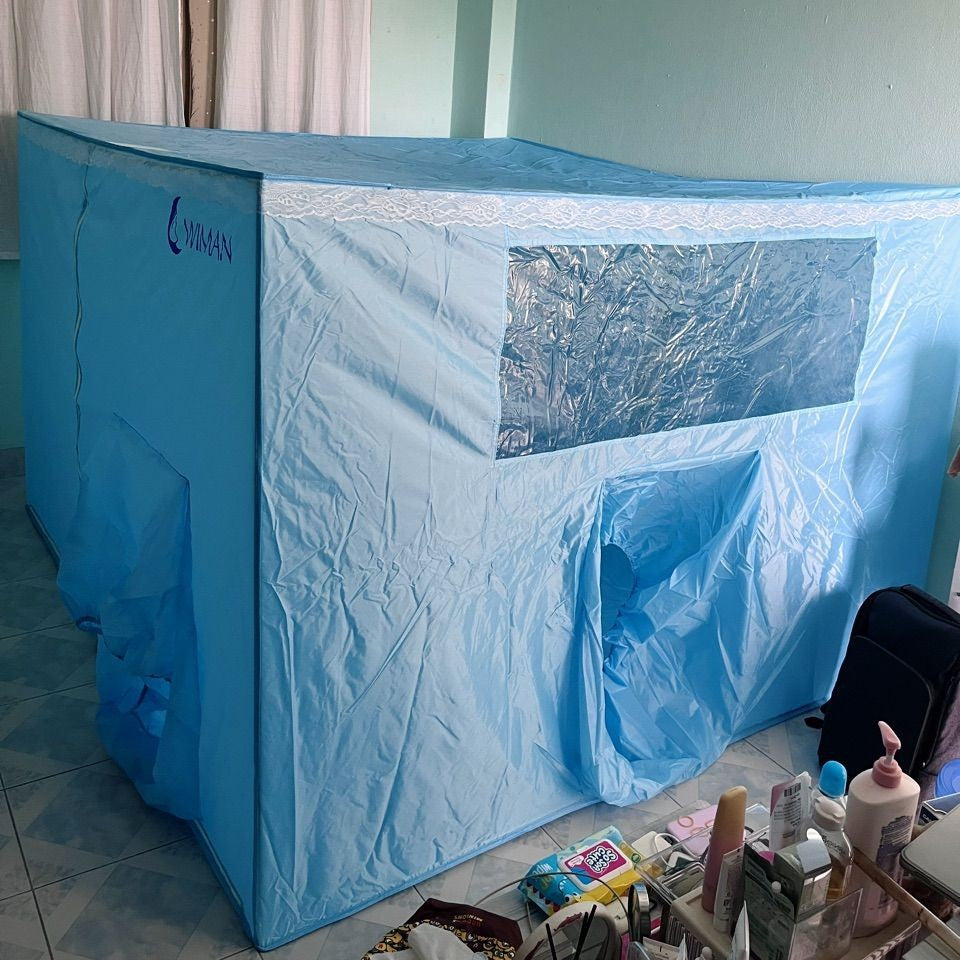 มุ้งแอร์สีฟ้า 4/5/6 ฟุต กักเก็บความเย็นดี ระบายอากาศดี กันยุงแน่น เหมาะห้องนอน/สนาม