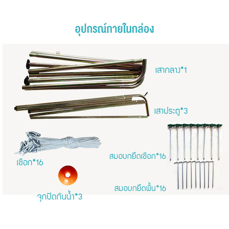 ดัชนีกันน้ำ | ≥ 5,000MM (ทนฝนได้ดีกว่าเต็นท์ทั่วไปประมาณ 2.5 เท่า) |