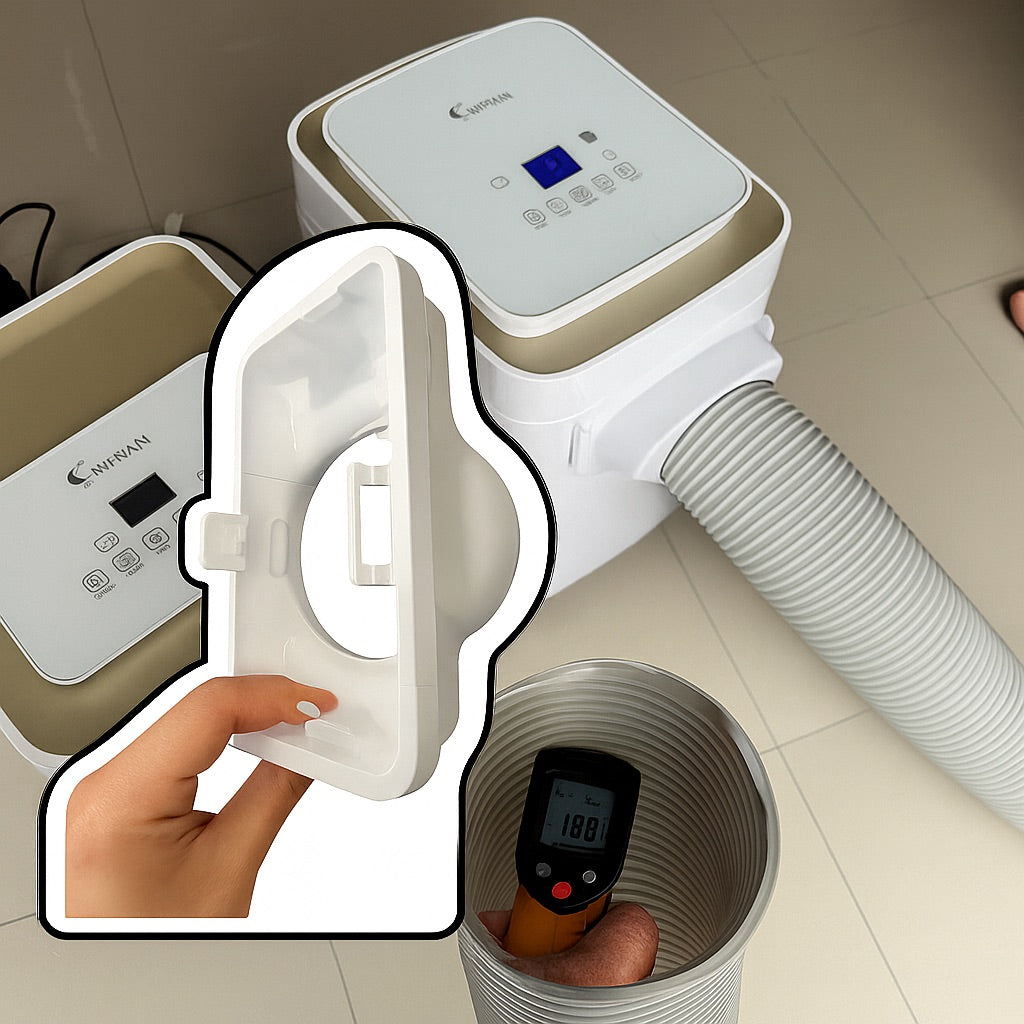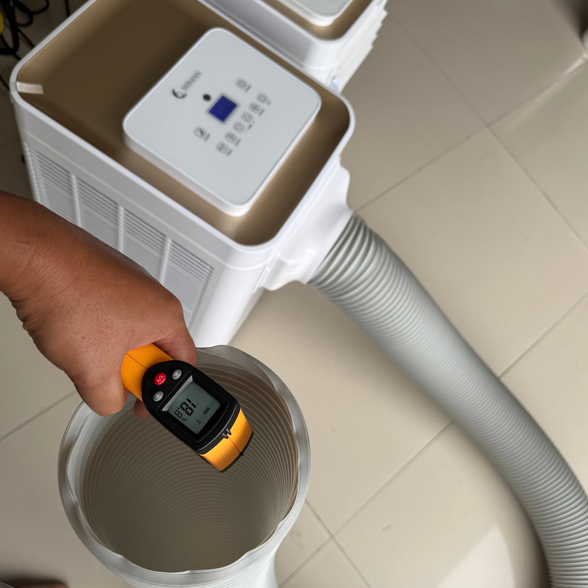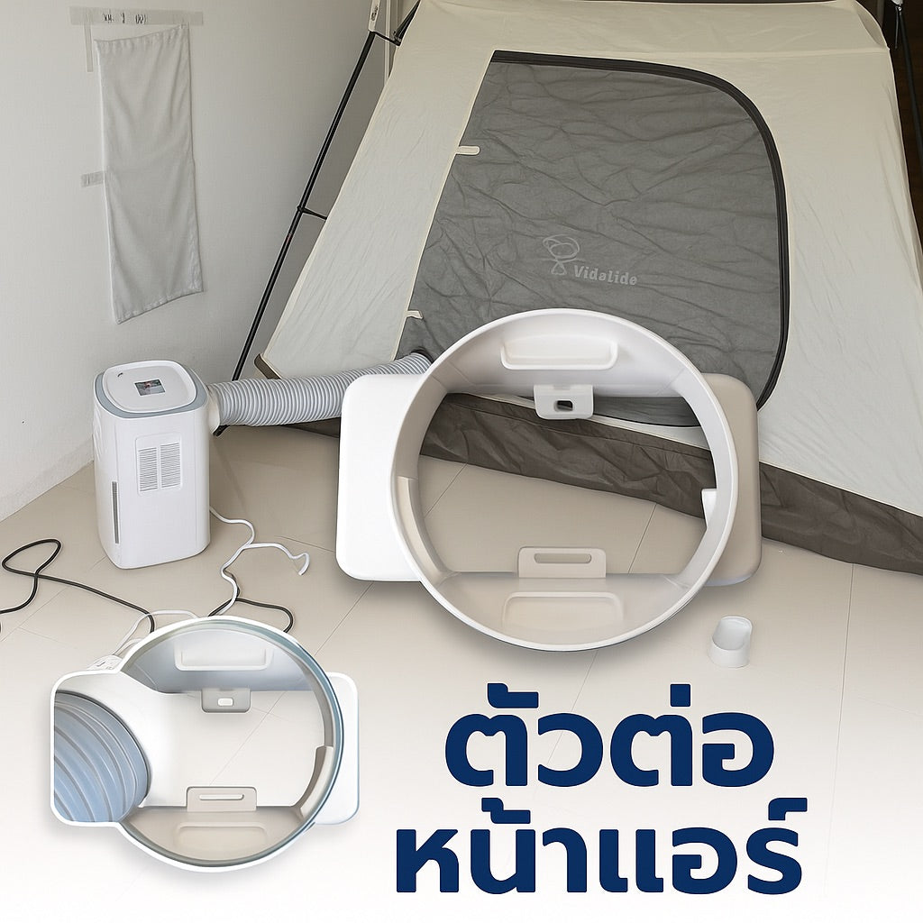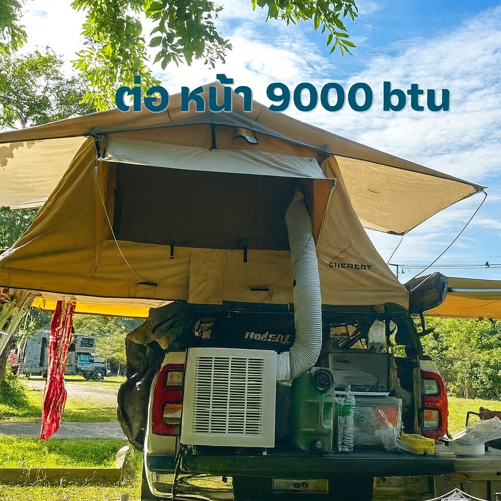 - • การใช้งานหลากหลาย: ส่งลมเย็นเข้าเต็นท์ ห้องนั่งเล่น ปาร์ตี้ โดยวางแอร์ไว้ด้านนอก