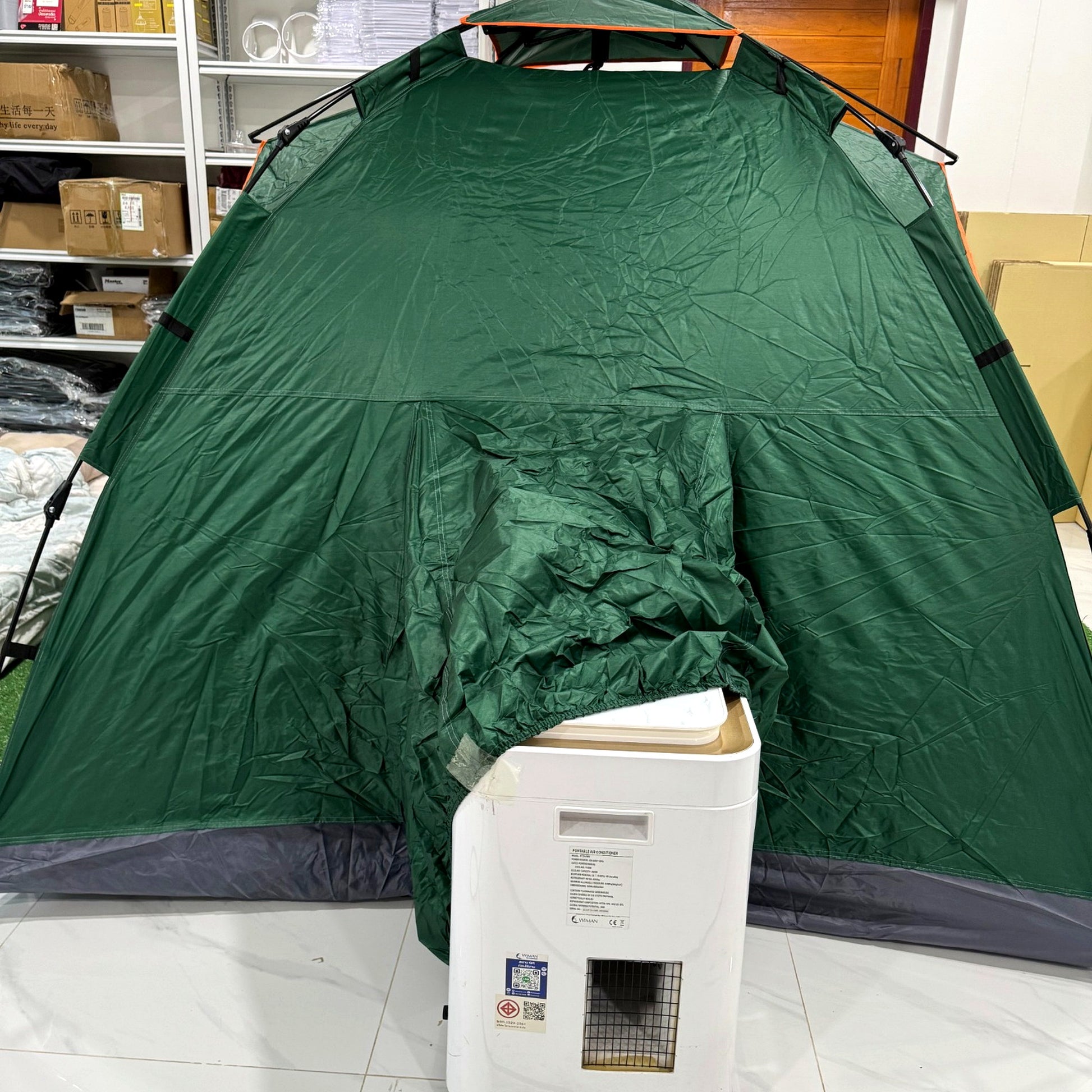 ชุดคุ้มรวมแอร์เคลื่อนที่ 9000 BTU กับเต็นท์แอร์ออโต้ 7 ฟุต — กางง่าย ~10 วินาที เย็นไว ~5 นาที เหมาะทั้งในบ้าน/คอนโด และแคมป์ปิ้ง • กันน้ำ 1500 mm • มอก.1529-2561 • รับประกันสินค้า 1 ปี / คอมเพรสเซอร์ 5 ปี