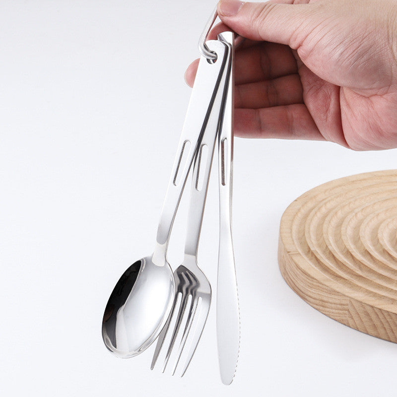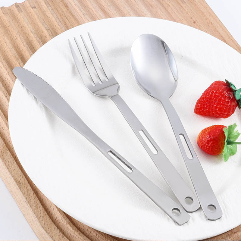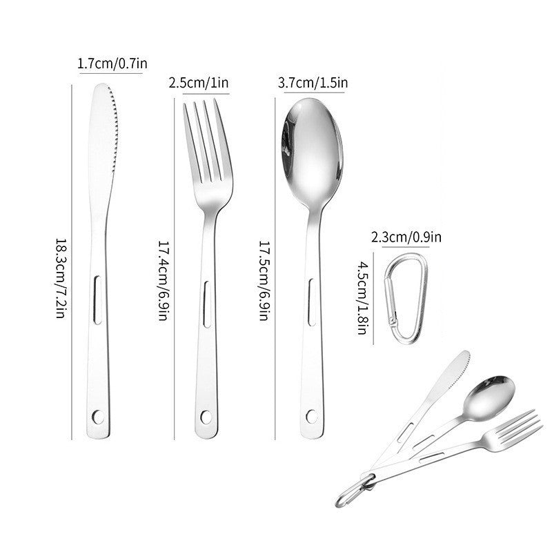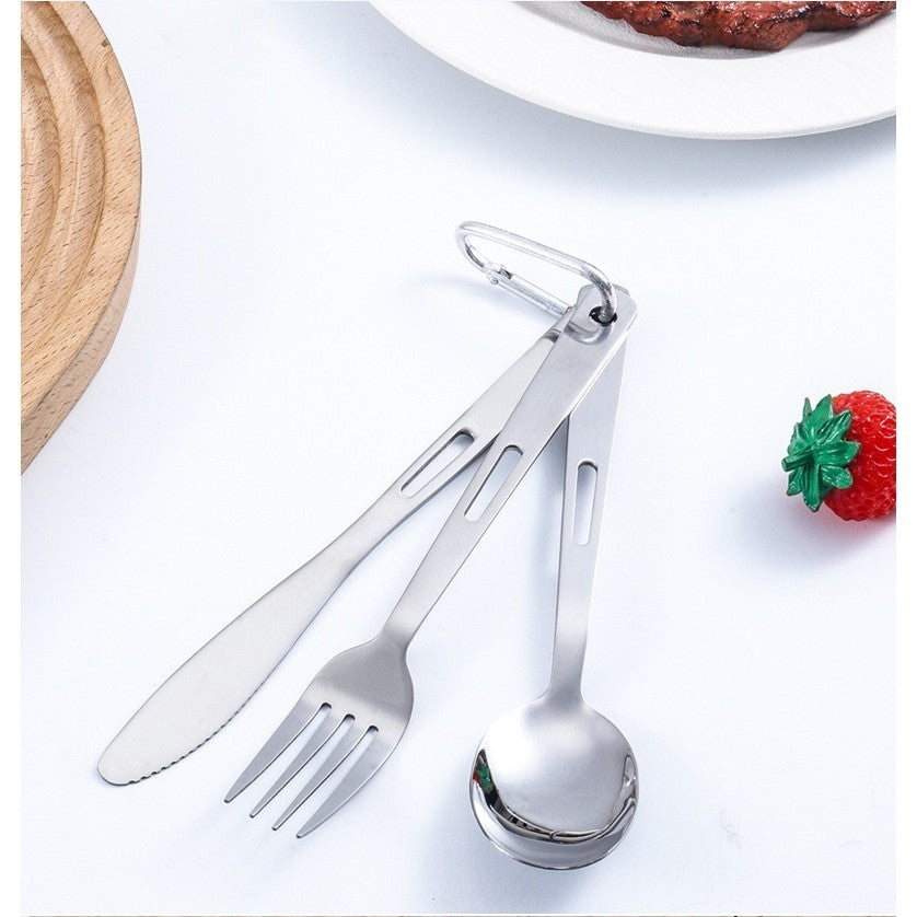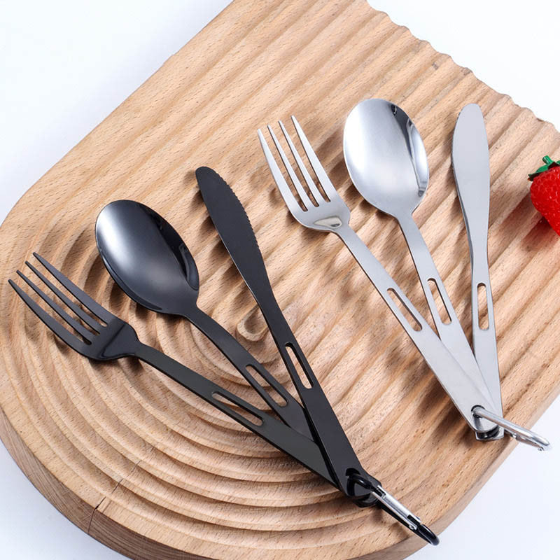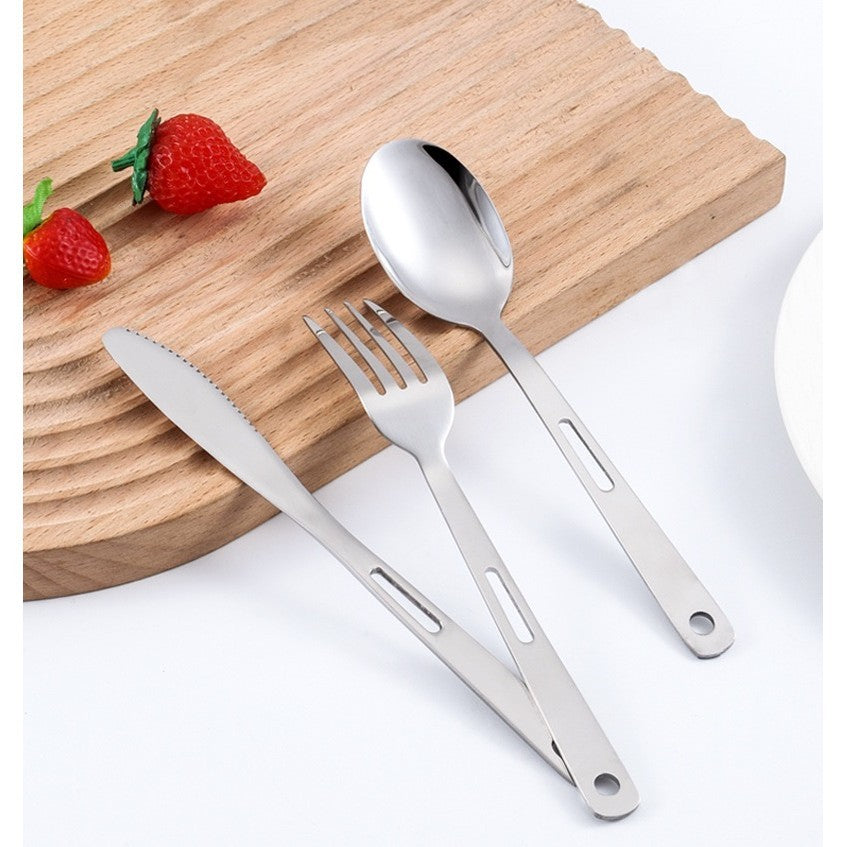 ชุดช้อนส้อมพกพา Highcamp สแตนเลสคุณภาพสูงออกแบบมาเพื่อตอบโจทย์การใช้งานกลางแจ้งอย่างสมบูรณ์แบบ สะดวกต่อการพกพาและจัดเก็บ.